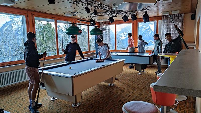 Uns stehen drei grosse Terrassen sowie eine Bar mit Sirup und anderen alkoholfreien Köstlichkeiten zur Verfügung. Zudem stehen euch ein Töggelikasten und ein Billardtisch zur Verfügung.