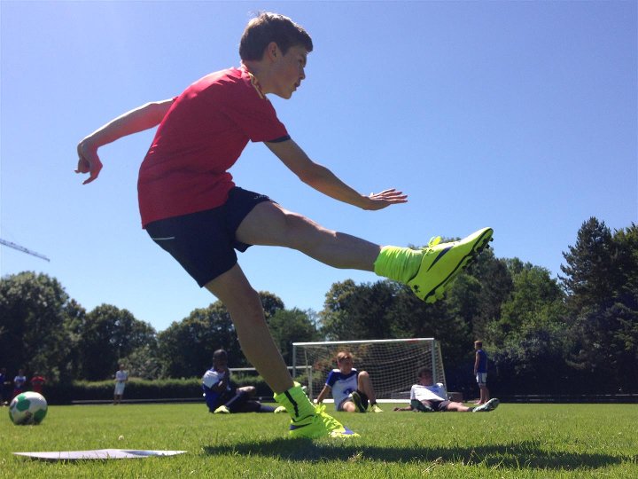 Das Fussballcamp richtet sich an alle fussballbegeisterten Nachwuchsspieler, die mehr als nur ein wenig kicken wollen. Täglich gibt es bis zu drei Trainingseinheiten und natürlich viel Raum für Spiele und Turniere. Eure Trainer zeigen euch die Grundtechniken im Fussball und verraten euch die Tricks der Profis. Ein gut integriertes Techniktraining rundet das Angebot ab. Kursinhalte sind zum Beispiel ein Dribbling- und Torschuss-Training, Ballan- und Mitnahme, Passspiel, Koordinationstraining und Tricks und Finten. Die Gruppeneinteilung bei unserem Fussballtraining erfolgt vor Ort nach Alter, Fussball-Skills und auch euren Wünschen.