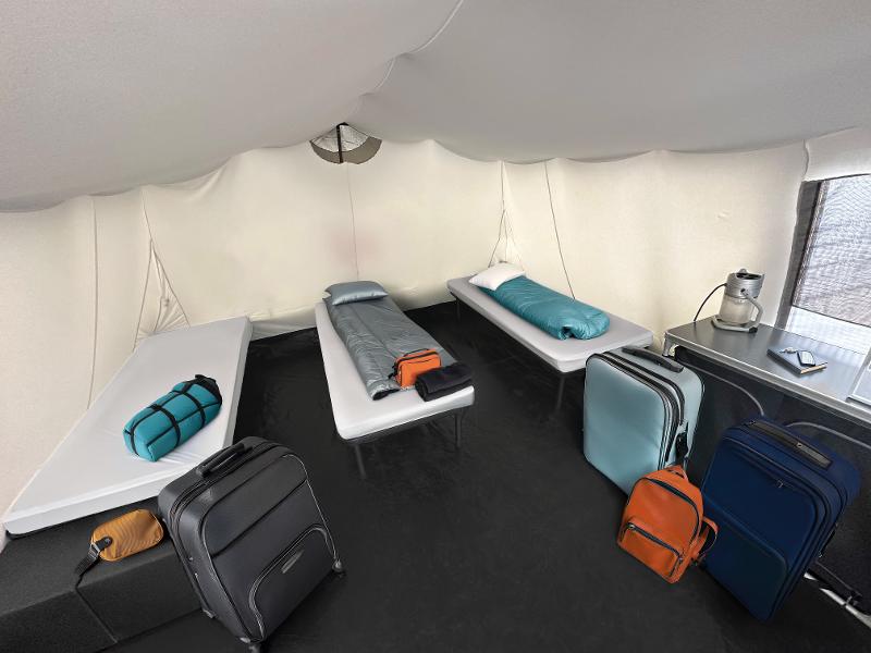 | Superiorzelt Vierbett | Hier schlaft ihr mit max. 4 Personen in 2 getrennten Kabinen mit Platz für je 2 Personen, PVC-Boden, Regale, Sitzgelegenheiten, Spiegel, Licht und Strom Aufpreis pro Woche: 0 CHF |