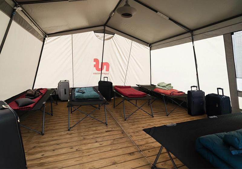 Im Unterschied zum Basiczelt stehen euch hier Matratzenbetten, Regale, Hocker und ein Spiegel zur Verfügung. Das Zelt ist für max. 4 Personen ausgelegt. Aufpreis: ab ca. 80CHF