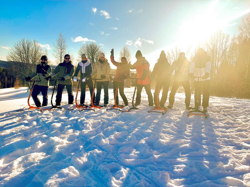 Eine grossartige, aktive Winteraktivität ist das Snowsteppen! Auf einer spannenden Abfahrtsroute fahrt ihr im Zickzack über schmale Waldwege und zugefrorene Seen. Snowsteppen ist für alle geeignet, und die Strecke kann in Schwierigkeit und Tempo angepasst werden.