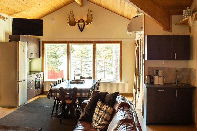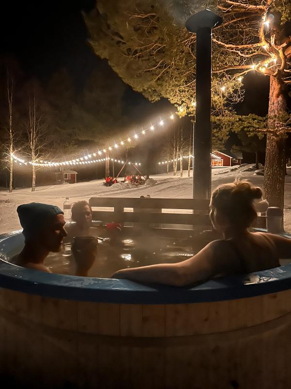Das Gelände liegt am wunderschönen zugefrorenen See Gastsjö und verfügt über verschiedene Einrichtungen. Hier könnt ihr euch zum Beispiel in der Sauna, oder auch im Jacuzzi entspannen, während ihr den schönen Ausblick geniesst.