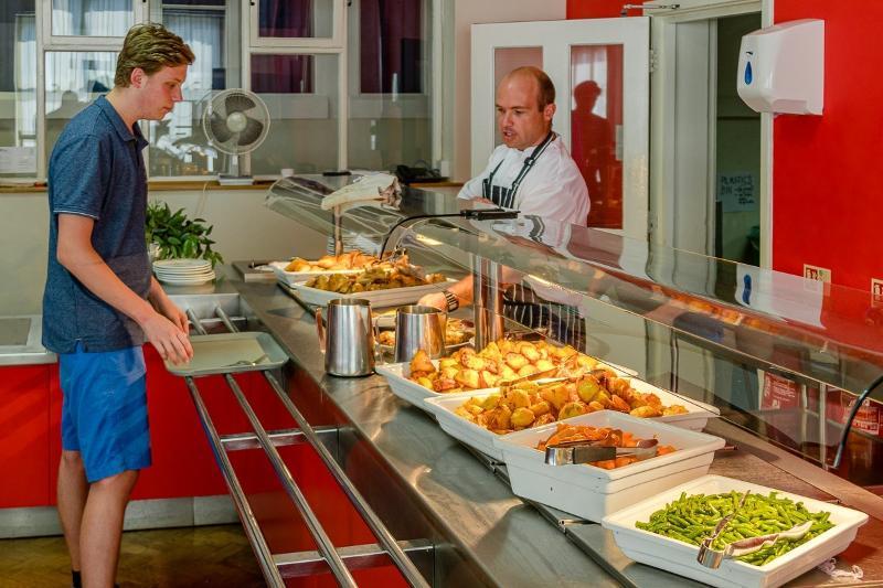 Während euer Sprachreise werdet ihr mit einer leckeren Vollpension verpflegt. Das Essen wird dreimal täglich im Speisesaal eingenommen und jeden Tag frisch zubereitet. Hier gibt es kontinentales Frühstück, zum Mittagessen ein 3-Gänge-Menü und zum Abendessen ein 2-Gänge-Menü, von denen ihr aus je drei verschiedenen, täglich wechselnden, warmen Mahlzeiten eines aussuchen können.