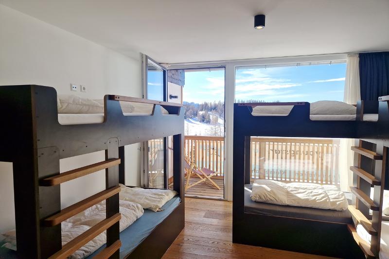 Die Pisten liegen euch direkt zu Füßen und es kann sofort losgehen mit eurem perfekten Skitag. Denn das ehemalige und 2019 komplett neu renovierte 4-Sterne-Hotel hat erst im Winter 2024/2025 neu eröffnet und bietet den idealen Standort für eure Skireise. Ausgestattet mit 6er- oder 8er-Zimmern mit Etagenbetten, Dusche/WC und teilweise auch einem kleinen Balkon könnt ihr euch jeden Tag auf ein weiches Bett freuen.